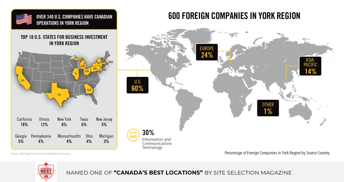 Centrally located in the Greater Toronto Area (GTA) and one of North America’s largest business hubs, York Region is an in-demand location for top-tier companies and talent. Discover where talent and opportunity intersect and why it is the choice for your business expansion into Canada or the GTA!